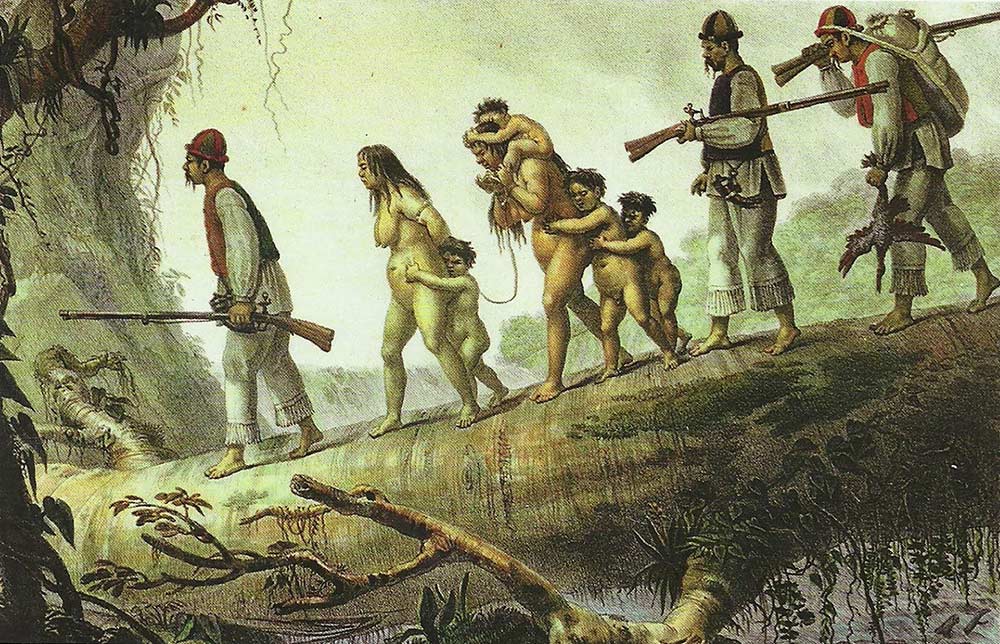 Motivado pela curiosidade do irmão, com quem trocava correspondências, Debret dedicou-se a registrar o verdadeiro Brasil. Tinha um interesse especial em retratar a escravidão e a cultura indígena. Além das imagens, Debret também nos legou relatos da brutal condição dos escravizados, como esta descrição das punições realizadas no “pau de paciência”, ou pelourinho, como era chamado o tronco em que os escravizados era amarrados para receber chicotadas: