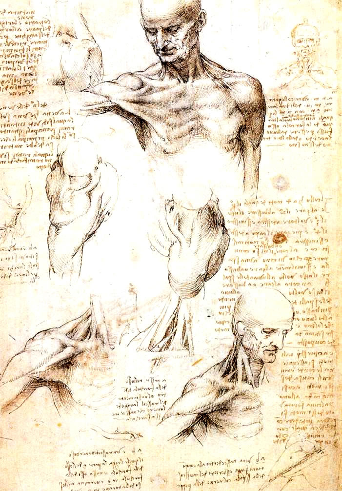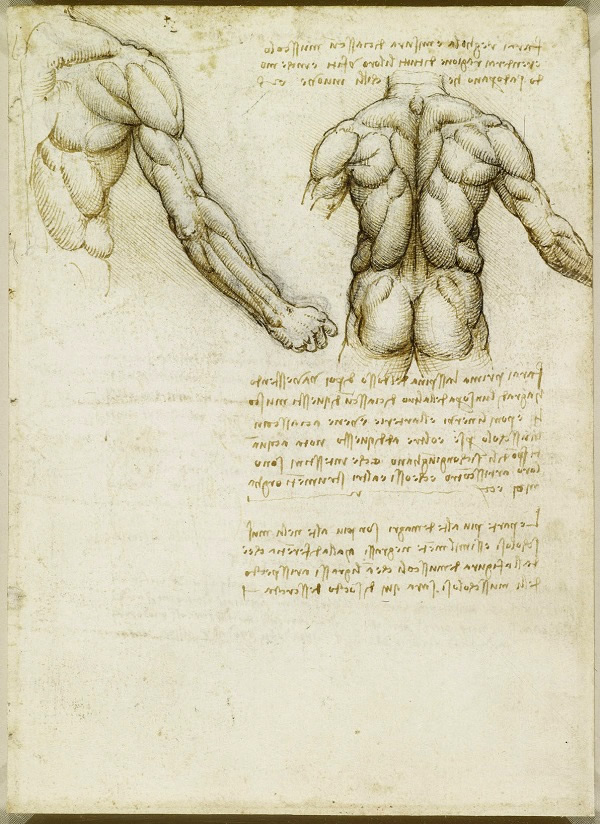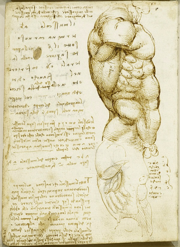 Vários detalhes que surgem em seus quadros também estão presentes nos cadernos, como desenhos de mãos, olhares e posturas corporais. Os estudos de anatomia também revelam que Leonardo da Vinci participou da dissecação de corpos de pessoas e animais, e são considerados revolucionários para a época.