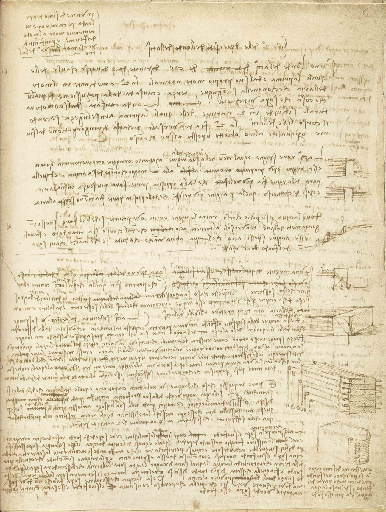 Esses cadernos continham pesquisas sobre anatomia, ideias para futuras obras, projetos de engenharia e arquitetura, armamentos, esquemas de aviação, submarinos, sistemas hidráulicos, estudos da natureza e outras invenções.