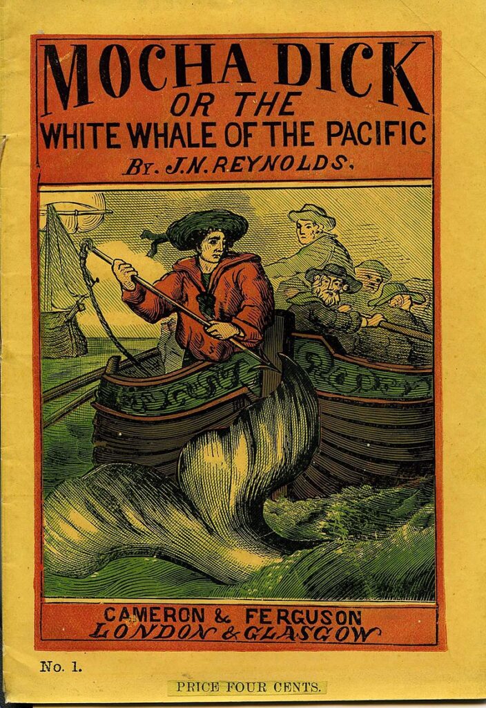 O livro Mocha Dick ou a baleia branca do Pacífico foi lançado em Nova York, 1839. Ilustração acima: capa de uma publicação de 1870 realizada em Londres. Mocha Dick foi, aparentemente, parte da inspiração para o romance de Herman Melville, Moby Dick (1851).