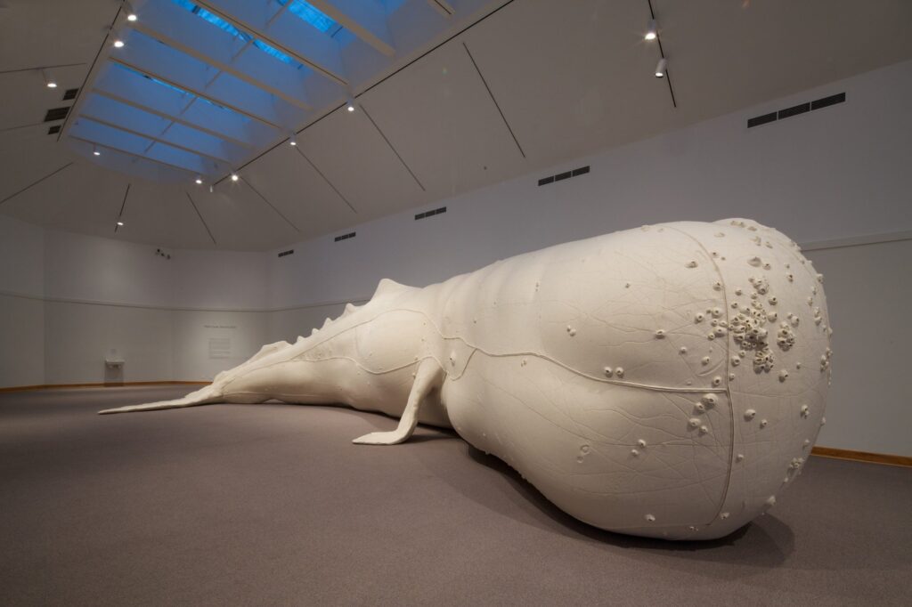 Escultura de Mocha Dick criada pelo artista plástico Tristin Lowe, exibida no Williams College Museum of Art (WCMA).